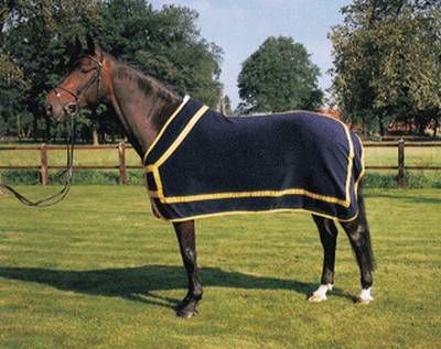 Eine Funktionsabschwitzdecke die auch gerne als Ehrenpreis mit Bestickung genommen wird, da sie ein auffälliges Design hat und durch den doppelseitigen Vlies die Feuchtigkeit schneller anch außen transportiert als herkömmliche Decken. Außen auf dem Vlies verdunstet sie und das Pferd kann ohne nach zu schwitzen trocknen. Vorne ist die Deckem it Klettverschluß ausgestattet und die Seiten sind extra lang geschnitten.